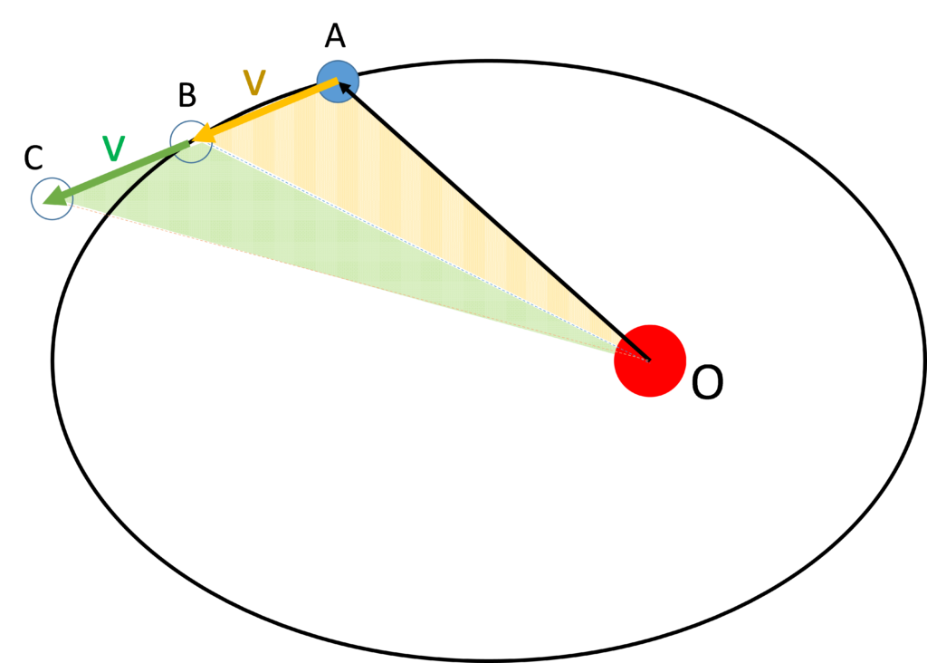 つまり、一定時間に惑星と太陽を結ぶ線が通過する面積が一定になっているのです。