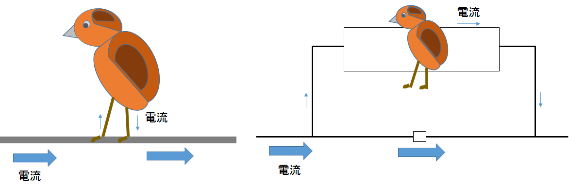 理由は、図にあるように電線に止まる鳥と電線で並列回路を作っていると考えるとわかりやすいでしょう。